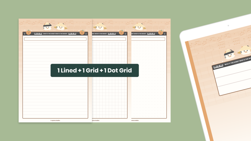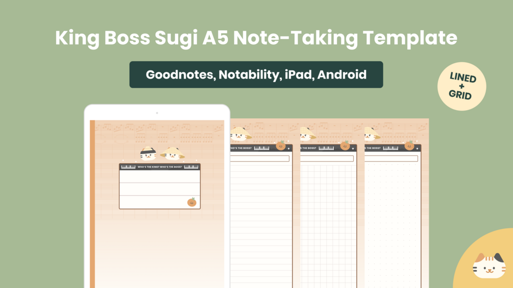 King Boss Sugi A5 Digital Note Taking Template | Matching Cover + Lined + Grid | Goodnotes, Notability, iPad, Android