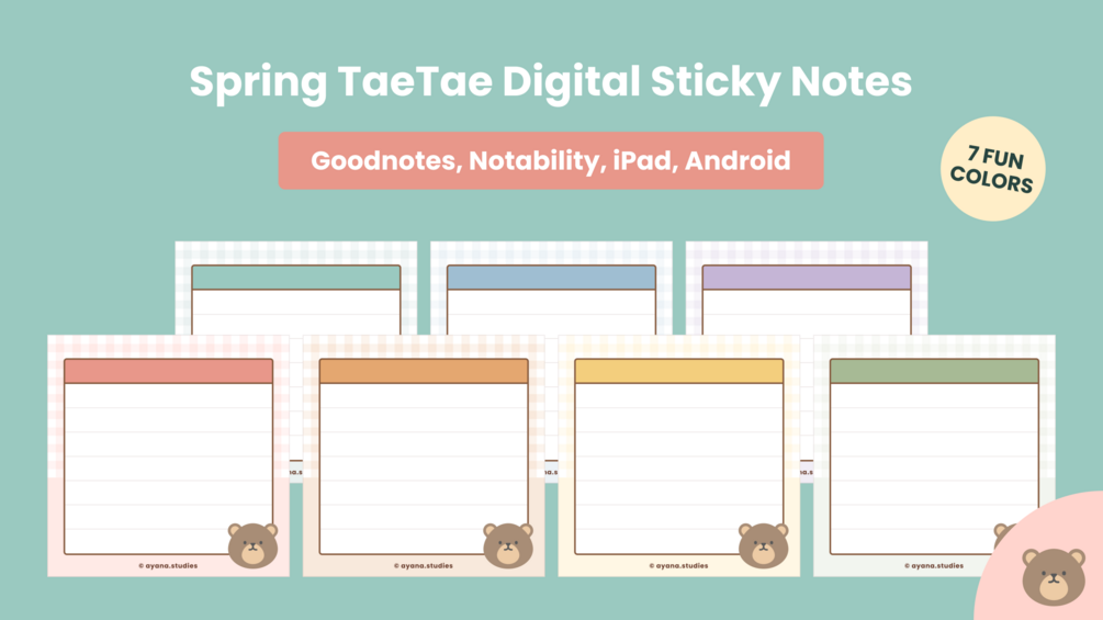 Spring TaeTae Digital Sticky Notes | Goodnotes, Notability, iPad, Android